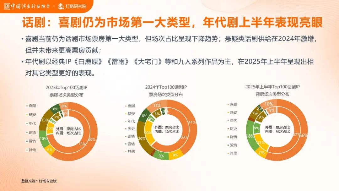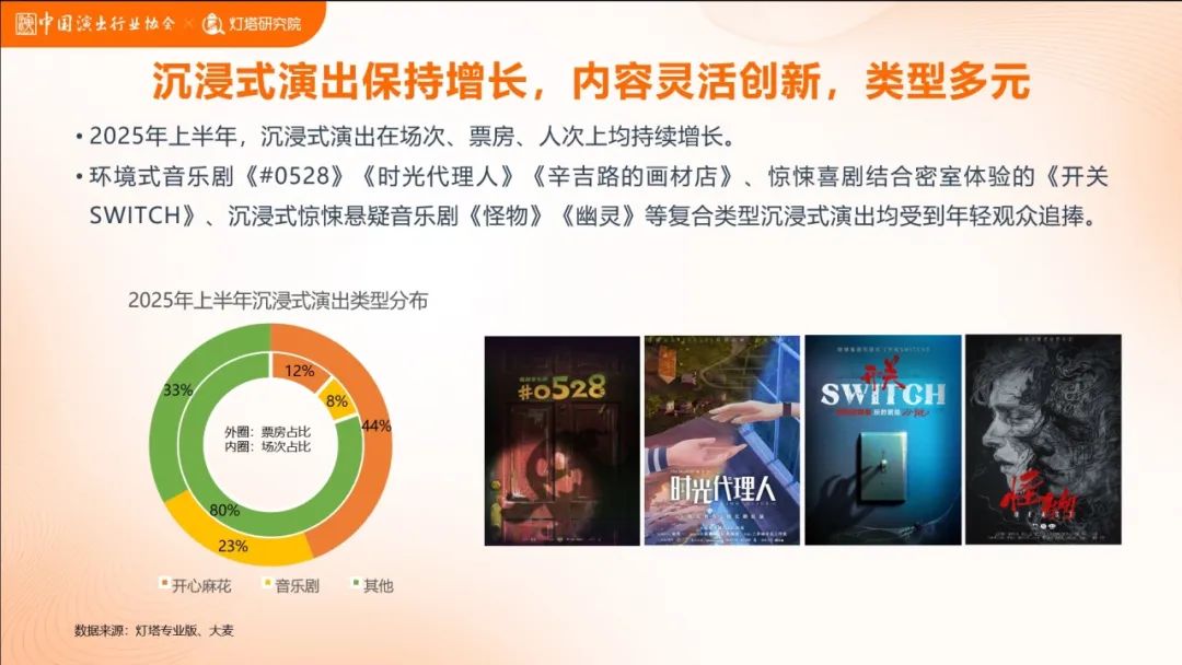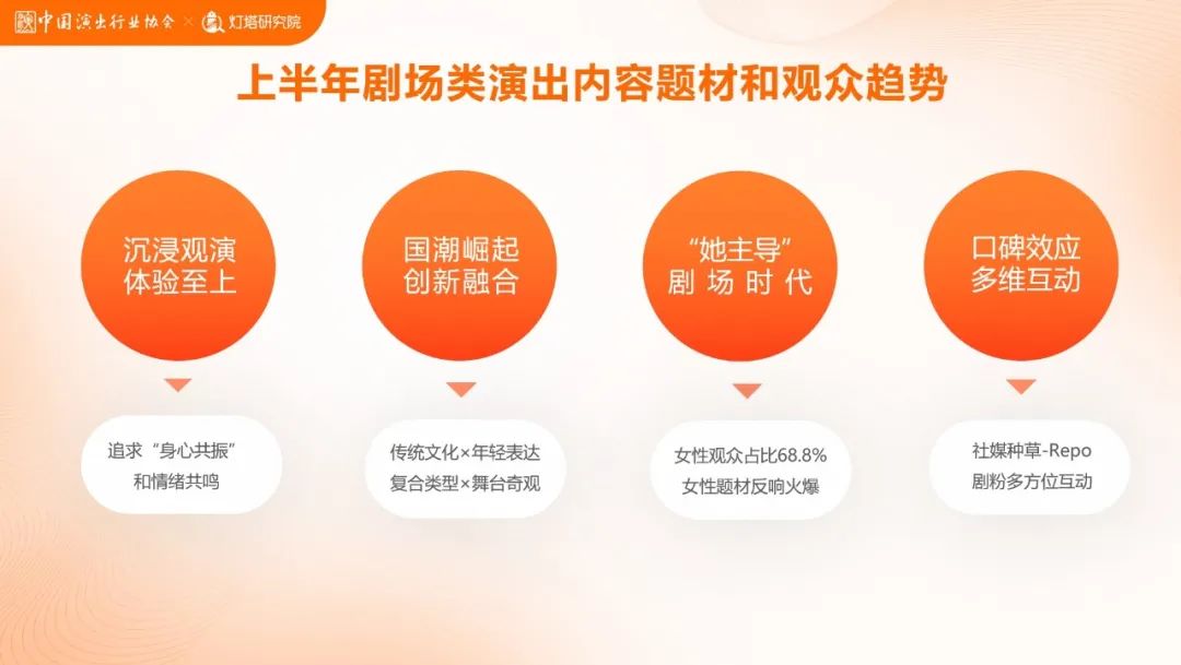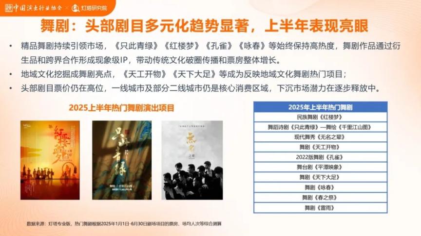 纵观2025年上半年,剧场演出消费越来越凸显高品质特点,消费者对剧场演出产品的艺术呈现、审美要求和消费需求均呈现上行状态,客观要求剧场类演出产品保证品质稳中求变,发现新的突破点,口碑效应成为剧场类演出产品扩展观演人群的关键,其中社交媒体的“种草”、剧评等Repo的分享、多维线上互动的传播对剧场项目推广起到至关重要的作用。